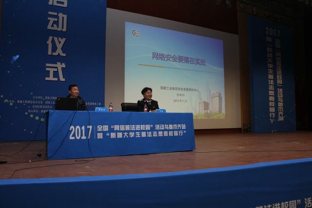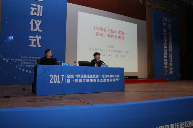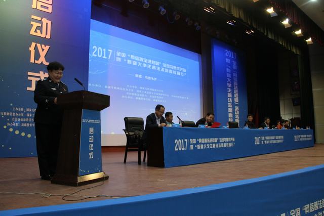 11月6日,由国家互联网信息办公室主办、新疆互联网信息办公室、国家工业信息安全发展研究中心、自治区党委教育工委、自治区依法治区办公室、自治区教育厅、新疆警察学院、新疆农业大学承办的全国“网信普法进校园”活动乌鲁木齐站启动仪式暨“新疆大学生普法志愿者校园行”活动在新疆警察学院隆重举行。