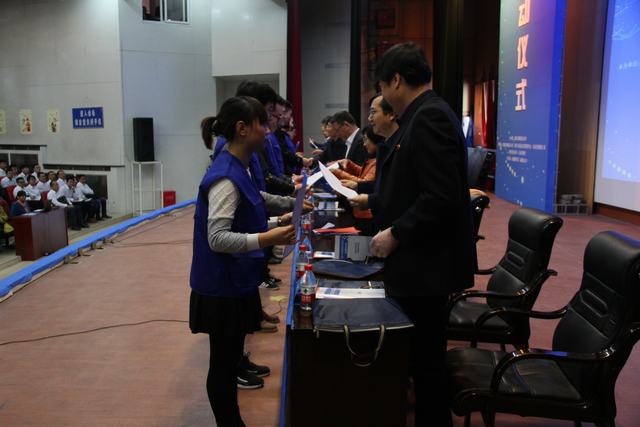 与会领导为全疆8所高校选聘的大学生普法志愿者代表颁发了聘书。