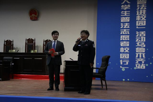 新疆警察学院党委副书记、院长李娟同志为活动致辞。李娟院长代表警察学院全体师生表示:新疆警察学院作为自治区唯一一所直接服务于总目标的公安普通高校,在自治区贯彻落实中央新疆工作总目标的过程中居于特殊地位,发挥着重要的作用。学院的重大使命和政治担当要求我们必须牢牢把握正确的办学方向,始终注重清朗网络环境建设,全力为新疆社会稳定与长治久安做贡献,全力为新疆公安队伍建设做贡献。一要讲政治,讲大局,坚决服从自治区党委网信办、自治区党委教育工委的领导和安排,全力配合组织开展好本次全国“网信普法进校园”暨新疆“大学生普法志愿者校园行”活动。二要珍惜机会,珍惜荣誉,认真做好组织动员工作,充分调动学院广大师生的主观能动性与积极性,共同参与全国校园网信普法讲座、网信法治论坛、模拟法庭等各项活动,达到“专家讲法,师生知法”的目的,努力为维护学院网络空间清朗创造良好的条件。三要做好、用好宣传,把握学院特点,注重强化公安院校师生网信安全的责任感和使命感,不断增强师生的宪法和法律意识;不断增强师生的规则和权利义务相一致意识;不断增强师生依法上网用网意识,积极推动学院师生个人及其家庭和社交群体依法上网,自觉做依法上网用网的践行者。四要结合形势,联系实际,以“网信普法进校园”活动为载体,深入学习宣传贯彻十九大精神,学习宣传贯彻习近平新时代中国特色社会主义思想,学习宣传贯彻习近平总书记关于新疆工作的重要指示精神,深入学习宣传贯彻落实自治区党委九届四次全体(扩大)会议,特别是陈全国书记的重要讲话精神,深入学习宣传以宪法为统帅的中国特色社会主义法律体系,大力弘扬社会主义法治精神,传播社会主义法治文化,增强中国特色社会主义道路自信、理论自信、制度自信、文化自信,更好地把自治区党委要求转化为推进学院各项工作的实际行动。