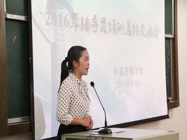 交流会由两位辅导员的参赛视频拉开序幕,随后张欢老师发言,此次参赛最大的感触就是多少次训练也比不上一次正式比赛的意义大,她总结此次参赛,用两个不一样和四个对于,简单来说,两个不一样,一是身份的不一样,我们是警察,公务员,也是辅导员。二是与其他学院老师有专职和兼职的区分,相对于其他高校的相比可能对于学生引导工作做的不到位。四个对于分别是对于忠诚,是自己的教师事业;对于奉献,时间和精力,付出和收获也是相对的;对于团结,在参赛过程中离不开背后团队的支持和鼓励;对于公正,比赛是绝对的公正公平,对每一位都是努力与收获成正比。最后她谈到自己的感悟:“第一点,需要有感恩之心。第二点,山外有山,人外有人,提升自己才是最重要的。第三,只有坚持,梦想总会实现。”
