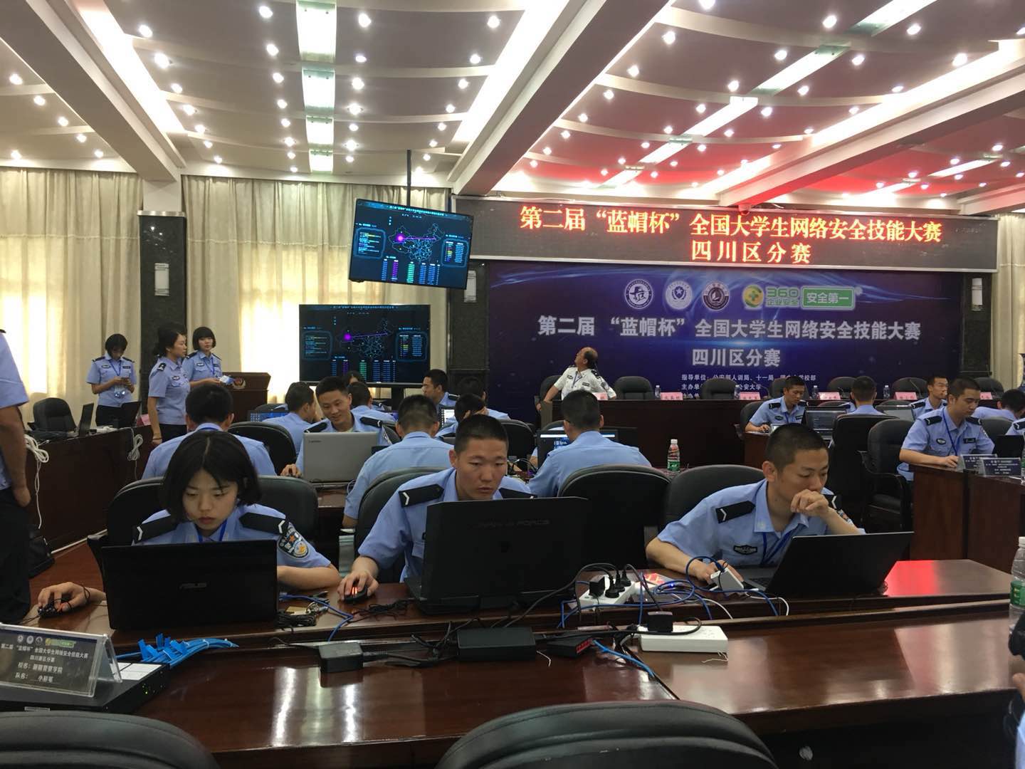 2018年6月15日,第二届“蓝帽杯”全国大学生网络安全技能大赛四川区分赛在四川警察学院圆满落幕。来自内蒙古警察职业学院、湖北警官学院、重庆警察学院、四川警察学院、贵州警察学院、云南警官学院、新疆警察学院7所公安院校的16支队伍参加了比赛。由我院信息安全工程系网络安全与执法专业学警组成的两支代表队代表新疆警察学院参加本次竞赛,共获得二等奖1项、三等奖1项,并有一支队伍晋级决赛。据悉,决赛将于今年9月在北京举行。