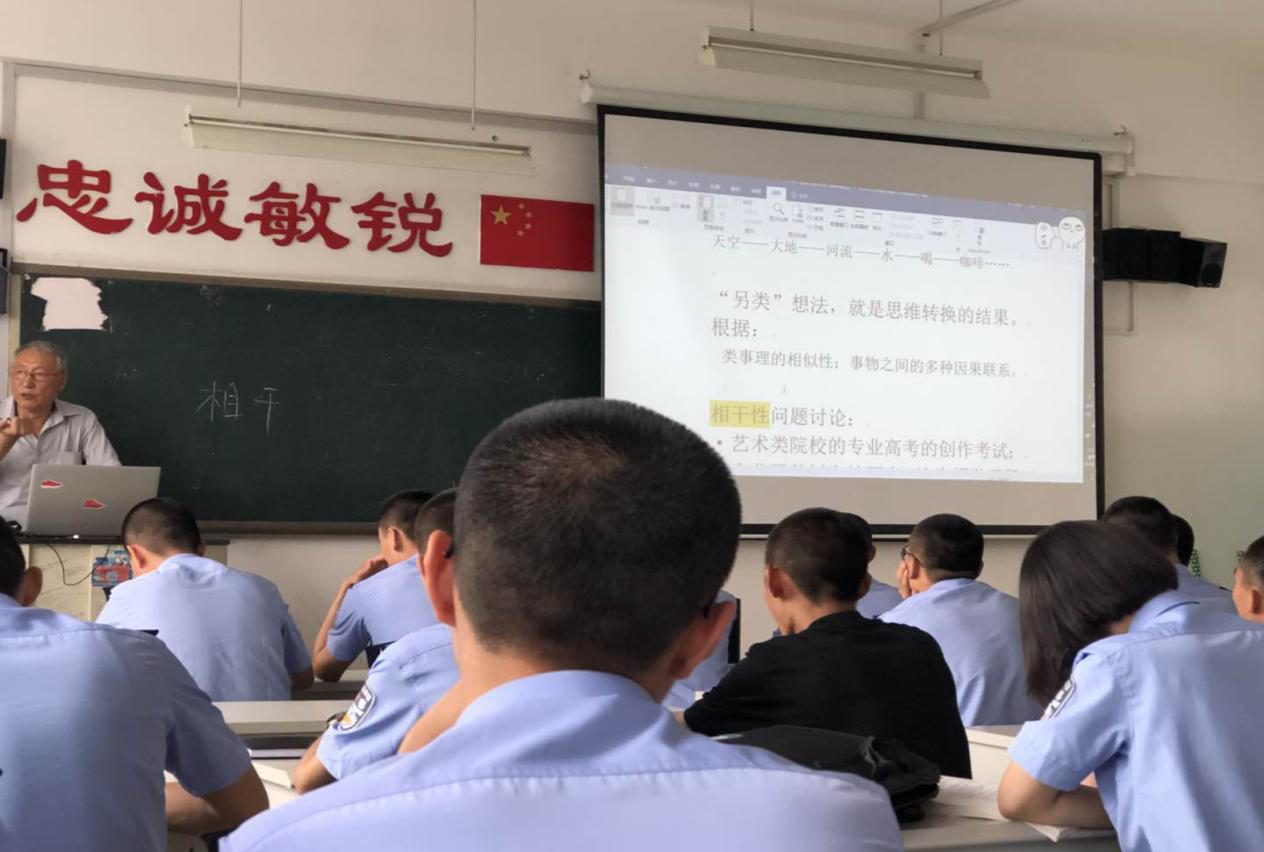 张晓芒教授以习近平总书记的党的十九大《报告》中的重要论述导入,把思维方法和创作意图能力结合起来,阐述了联想思维的特点。接着,结合学生公安实战工作中的体现法律逻辑特点的典型连环案件展开讲解,激发了学生积极探究的浓厚兴趣,分析深刻精辟。张教授让学生结合毕加索的画作,将学生引入到类似联想的思考之中。在讲到联想思维的跳跃性时,教授以中国传统文化中一个故事:“一个老状元给他妻子过生辰,他出了一首诗的上联想要为难苏东坡,苏东坡成功对出下联”为例,给予了学生充分思考和讨论的时间,让学生各抒己见,畅所欲言,张教授提供思路上的引导和点拨。结合学生讨论成果,在讲意象性思维时以“枯藤老树昏鸦”的元曲名句为例,通过引经据典,结合《易传·系辞》中的“圣人立象以尽意”具体分析了意象性思维。通过举出宋代诗人李清照《夏日绝句》和元曲作家马致远的《天净沙·秋思》中的名句为例,介绍了关系联想和空位联想。