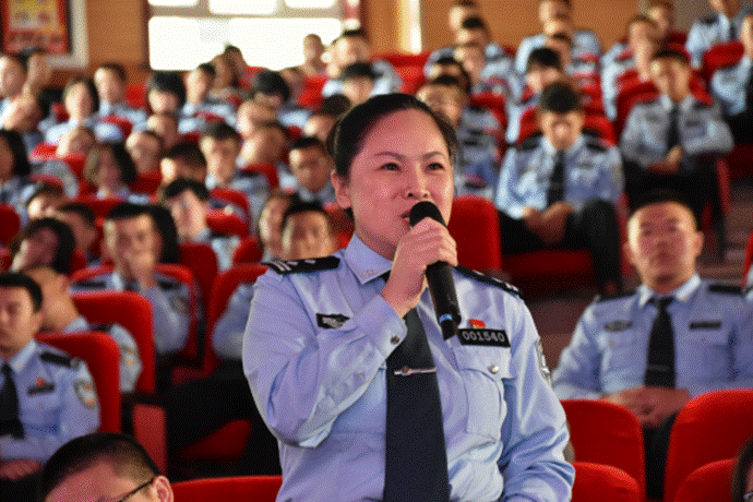 语言系语文教研室主任、副教授、省级普通话测试员董爱华老师做《推广普通话,普及在你我》普通话推广专题讲座。董爱华老师从普通话的发展过程、普通话的任务及目标、普通话的法律依据以及意义、普通话水平测试简介及报名方式四个方面进行了讲解,用数据图例清楚地展示二十多年来国家推广普通话的成果以及《国家语言文字事业“十三五发展规划”》确立的目标,并以谈话的方式与现场观众进行了有效地互动,让大家强烈地感受到推广普通话的重要意义。治安系教师艾恒平根据自己亲身感受以及在南疆结亲时组织亲戚家孩子进行诗歌朗诵表演,深有感触地谈了推广普通话给自己的家人和南疆亲戚带来的便利并倡议大家说普通话。一名哈萨克族学警也从自身的经历向大家展示了学好普通话的优势。座谈会结束前,董老师还向大家推荐了新疆普通话水平测试报名的网站及学习普通话的APP,整场讲座气氛热烈,掌声阵阵。