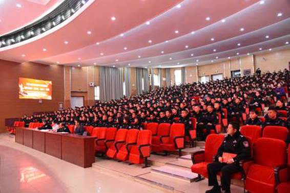 11月27日,2019年自治区“百名法学家百场报告会”法治宣讲活动新疆警察学院专场报告会,在新疆警察学院长沙路校区多功能厅举行。自治区党委全面依法治疆委员会办公室副主任、自治区司法厅党委书记王江作了《贯彻全面依法治国新理念新思想新战略 推进法治新疆、法治政府、法治社会一体建设》专题报告。新疆法学会党组成员、秘书长、自治区“双百”组委会办公室主任王霞参加报告会并讲话。自治区公安厅党委委员、学院党委书记张泽玉主持报告会,学院党委委员、政治部主任宗宏斌和全院教职工、学警代表800余人一起聆听报告会。