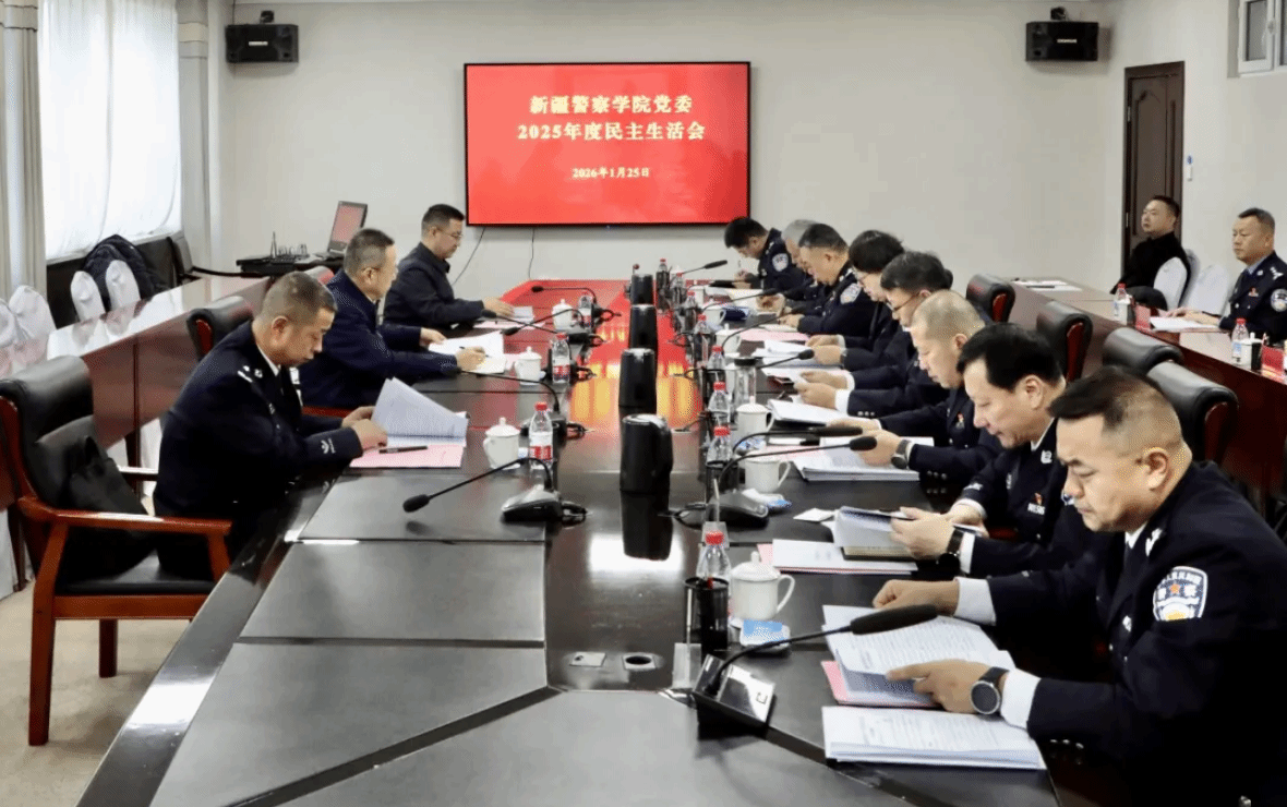 2026年1月25日,学院党委召开2025年度民主生活会。会议深入学习贯彻习近平新时代中国特色社会主义思想,全面贯彻落实党的二十届四中全会精神、中央政治局民主生活会及二十届中央纪委五次全会精神,贯彻落实自治区党委十届十五次全会和自治区纪委十届六次全会精神,围绕锲而不舍落实中央八项规定精神,推进作风建设常态化长效化主题,结合学院办学治校实际开展自我检视、进行党性分析,严肃认真开展批评和自我批评。学院党委书记刘炜主持会议。自治区党委2025年度民主生活会督导组、自治区公安厅有关同志到会指导。