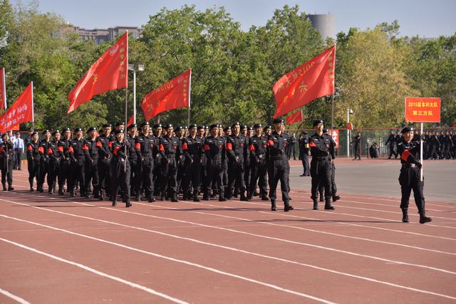 学员各大队方队蓬勃向上、意气风发,坚定、执着,耐力与希望,踏着青春的步伐前进,口号嘹亮响彻天际。
