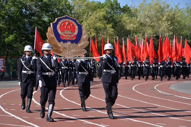 运动会在庄严的国歌声中拉开序幕。由警徽方队、校旗方队、红旗方队组成的国旗护卫队作为第一梯队以斗志昂扬的精神面貌走过主席台,他们神圣威武,庄重严肃,为警体运动会添上了光彩夺目的一笔。