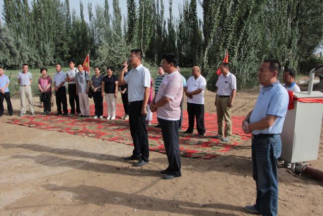 伴随着欢快的音乐,李娟院长和叶飞书记同时剪断彩绳,井水从管道喷涌而出,参加仪式的所有人一起载歌载舞,欢庆这一激动人心的时刻。在这农忙浇灌季节,两口井的开通切实为英买里全村2000多亩地解决了灌溉的燃眉之急。住村工作组全体成员倍受鼓舞,将更加努力的为三个村、为希依提墩乡、为麦盖提做出更多努力。