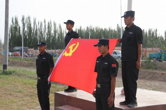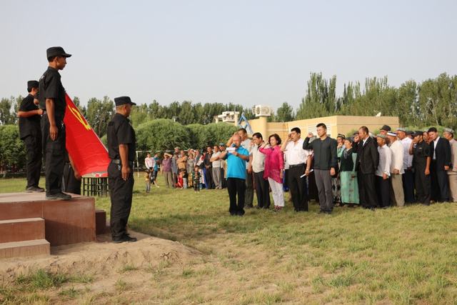 为庆祝建党95周年,认真贯彻落实麦盖提县委、希依提墩乡党委有关文件要求,在全体党员中认真开展“两学一做”学习教育,进一步提高新疆警察学院住琼库尔买里村工作组临时党支部和全村党员干部的党性修养, 6月27日,新疆警察学院住琼库尔买里村工作组临时党支部与琼库尔买里村党支部在光正体育馆门前联合开展“重温入党志愿、重温入党誓词”主题活动,新疆警察学院党委委员、纪检委书记、住村工作组总领队、琼库尔买里村工作组组长帕提曼·吐尔逊带领工作组临时党支部全体党员和琼库尔买里村党支部全体党员参加此次活动,全村群众观摩活动。