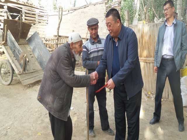 随后,杨志明书记与工作组、村委会成员共同慰问了老党员和贫困户,给他们送去了慰问金和米面油等慰问品,叮嘱他们要保重身体。杨书记要求工作组平时多关心老党员,充分发挥老党员“懂政策、知村民”的优势,大力宣传党的各项惠民政策和“去极端化”宣讲的作用。