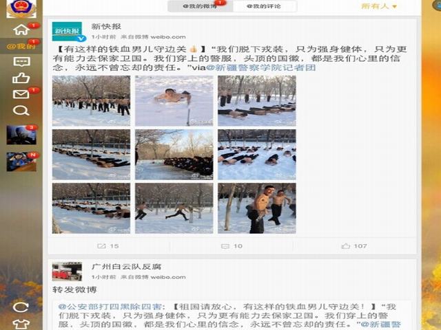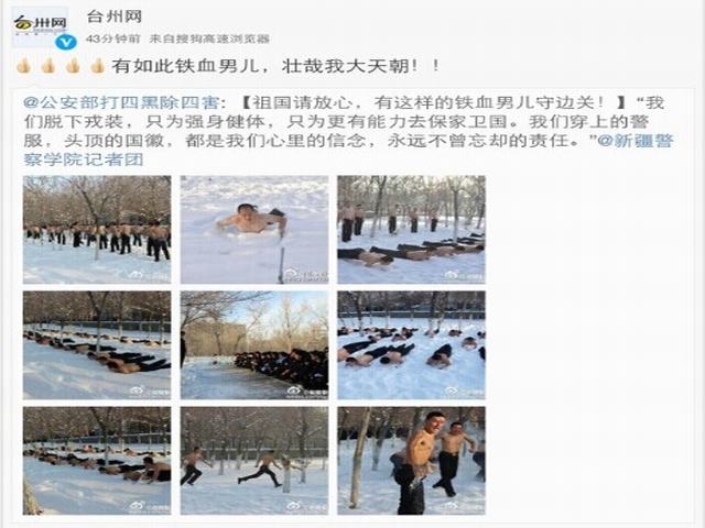 公安部官方微博转发学院记者团 “耐寒训练强身健体守边关” 微博