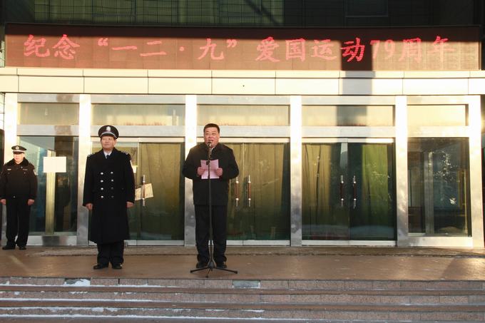 升旗仪式结束后,杨志明书记发表讲话,号召全院师生永远铭记“一二•九”这个神圣而又伟大的日子,接过历史传承下来的精神火炬,发扬新疆警院人的优良传统,敢于担当,积极工作,努力学习,立志成才。为建设一流的公安院校,培养一流的公安人才,为实现新疆社会稳定和长治久安的总目标和中华民族伟大复兴的“中国梦”而努力奋斗。