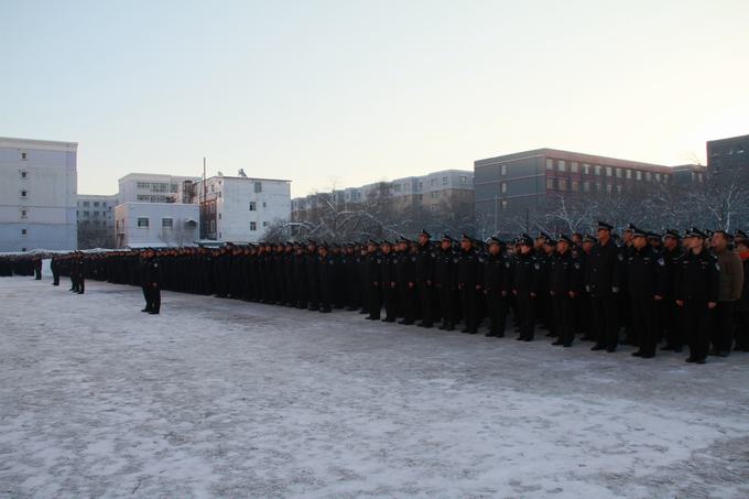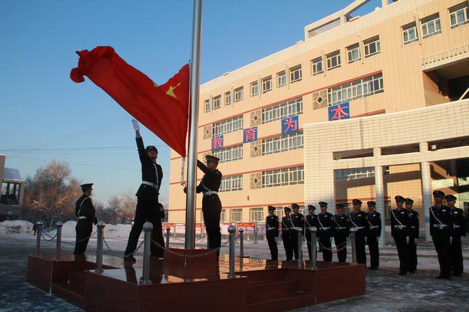 早晨10:30,伴随着冬日的旭日,学院升旗仪式正式开始,全院师生身着警服庄严肃立,威武雄壮的国旗护卫队员们护送鲜艳的五星红旗进场,高昂激越的中华人民共和国国歌在校园上空激荡,朝阳挥洒在徐徐上升的五星红旗上,象征着我们的祖国如初升的太阳充满了希望。