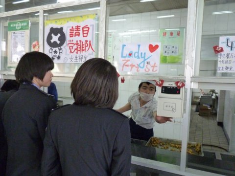 根据学生处团委关于女生节系列活动安排,4月18日至4月30日,我校二楼学生餐厅特在女生节期间举办了“Lady First(女生优先)”爱心优惠活动。此活动主要是在我校学生食堂为女生设立专属窗口,并在爱心栏张贴女生祝福语。