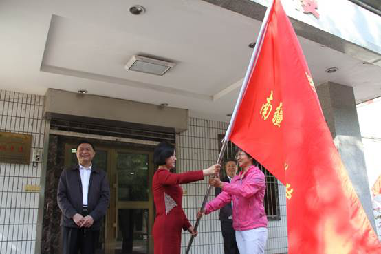 送行会上,帕提曼·吐尔逊同志代表学院党委向本次南疆学前双语支教工作队授旗。