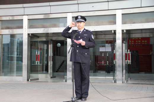 3月26日早晨9:00,学院举行周一升国旗仪式,院党委委员、政治部主任宗宏斌同志和全院教职工及学警参加升旗仪式。升旗仪式结束后,全体同志开展了我是中国公民宣誓活动,图书馆党员干部古丽尼沙·买买提和2017级大队七中队15区的沙木哈尔·塞力克同学进行了发声亮剑向“两面人”作斗争主题发言。