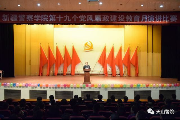 为扎实开展以“聚焦总目标,严明政治纪律,锻造优良作风”为主题的第十九个党风廉政教育月活动,激励学院党员奋发有为,以优异成绩迎接党的十九大胜利召开。9月27日下午新疆警察学院在多功能厅举办第十九个党风廉政建设教育月演讲比赛。学院全体教职工与300名学员代表观看比赛。