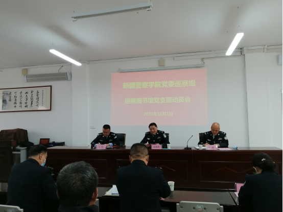 11月1日下午,新疆警察学院党委巡察组巡察图书馆党支部动员会在图书馆警察书屋召开。学院党委委员、副院长、巢锡辉、学院党委巡察办、政治部组织人事处、纪检委相关领导同志、学院党委巡察组全体成员,图书馆全体在岗教职工、退休教职工代表共计30余人参加会议。
