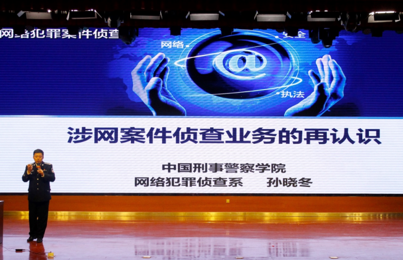 开班仪式结束后,全国公安优秀教官、中国刑事警察学院网络犯罪侦查教研室主任孙晓冬教授以《涉网案件侦查业务的再认识》为题开讲,通过对大量真实案例的剖析讲解,极大激发了学警兴趣,紧紧抓住了学警思维,整场讲座环环相扣、精彩纷呈,掌声不断,使在场教师和学警都开阔了视野,受益匪浅。