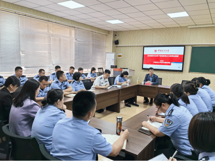 5月28日,学院科研处举办了第八期学术沙龙,邀请中国政法大学国家安全学院、依法治疆研究院讲师陶野博士以《总体国家安全观下宣扬恐怖主义的刑法规制》为题,围绕“宣扬恐怖主义之刑事定罪、刑事处罚、刑法规制之衔接”内容做专题讲座。进一步提升学院教师教学技能与学术研究能力,营造良好学术交流氛围。