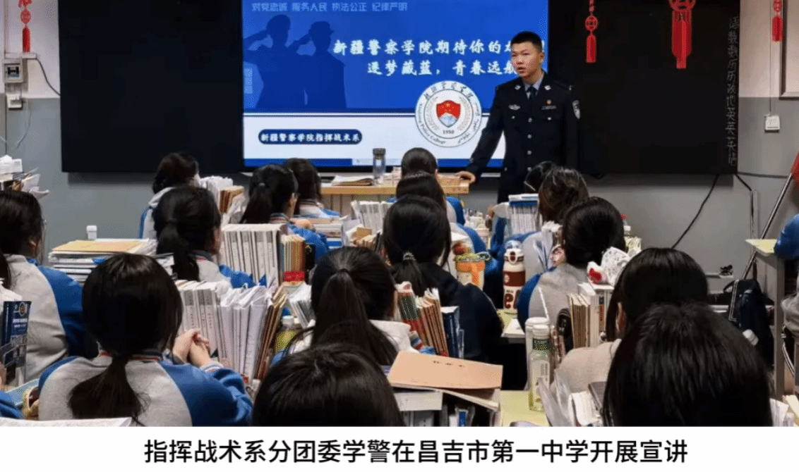 为提升学院在全疆各地高中师生中的知名度和影响力,吸纳有志青年投身公安事业。寒假期间,学院团委组织各分团委开展“三下乡·返家乡”实践宣讲活动,组织学警重返高中母校,以藏蓝青春力量为学弟学妹们指引成长方向,助力学生构筑藏蓝青春梦想。